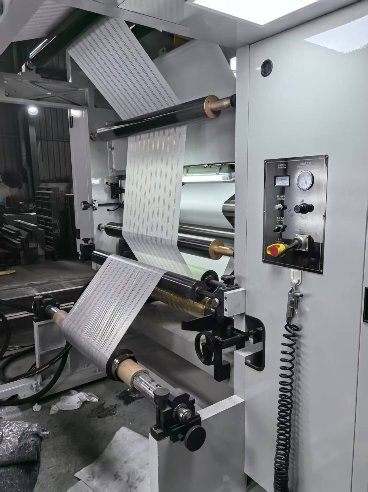 3.壓印升降機(jī)構(gòu):印刷壓輥采用雙氣缸壓印,與手板閥自鎖定位。特點(diǎn):燙色更穩(wěn)更亮,保證壓力平均, 確保色差。